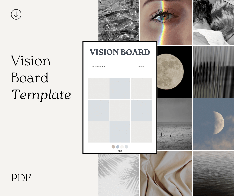 Craft a powerful vision board with this easy-to-use printable template! This downloadable PDF provides a structured format to guide you in manifesting your goals and aspirations.